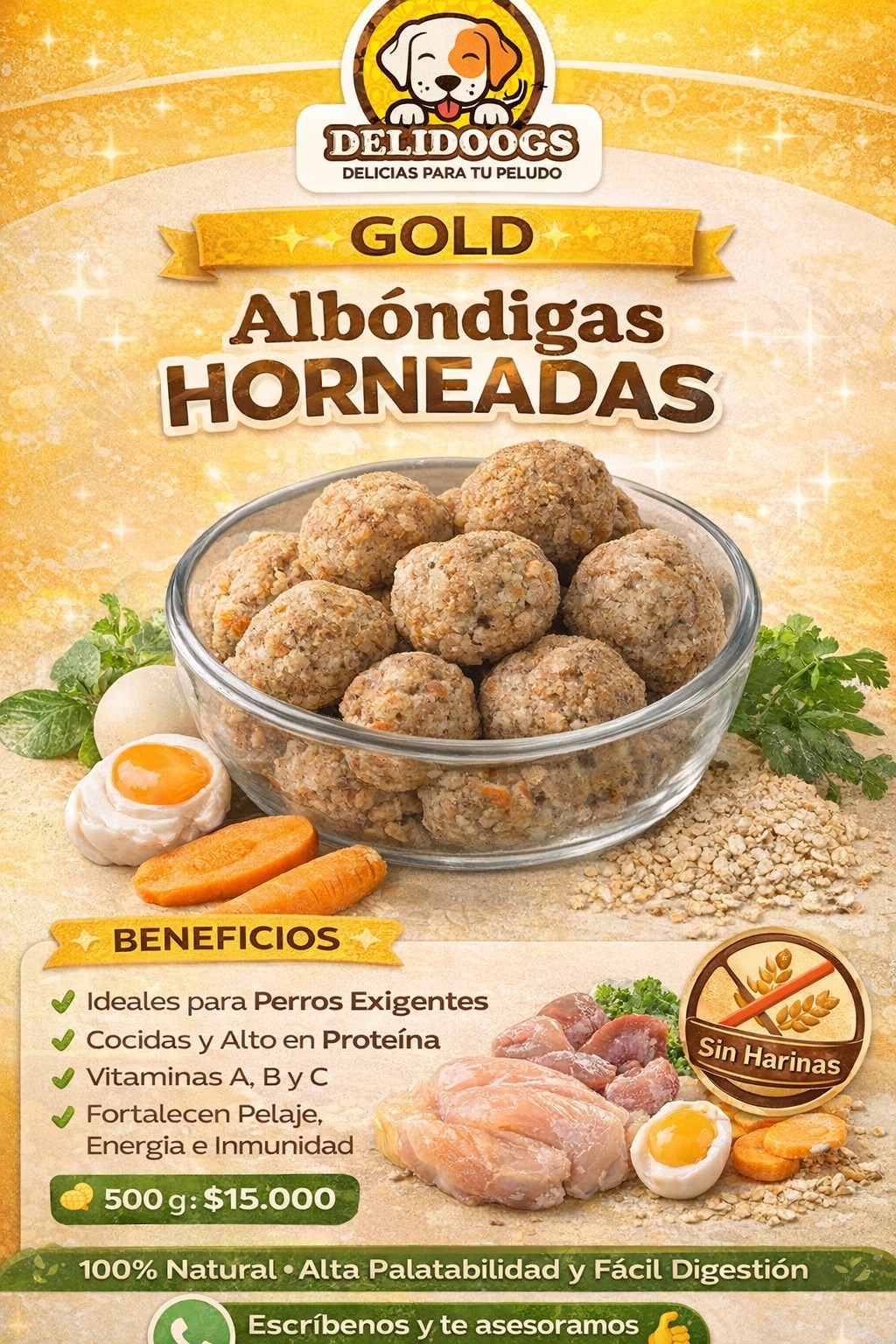 🌞 Albóndigas Horneadas (50 g c/u)✔️ Ideales para perros exigentes o tutores que prefieren comida cocida